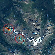 - Hyperspectral data from Sentinel and Aster 2 satellite imagery was used to identify clay and phyllic alteration as well as to identify hot vs cold white mica (Figure 2).