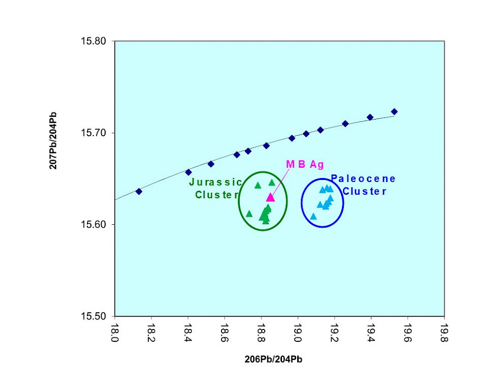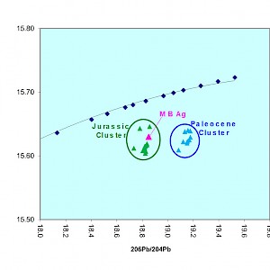 Figure 3 – Lead isotope data (From Godwin et al., 1991); ACW mineralization plots with other known Jurassic aged deposits