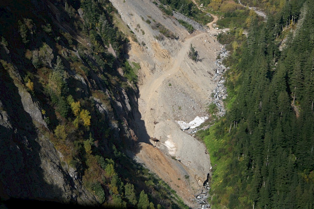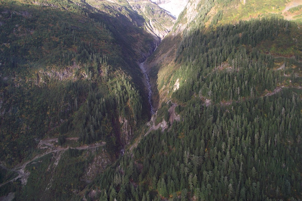 Looking at 1000 level on Red Cliff zone, Lydden Creek to the right